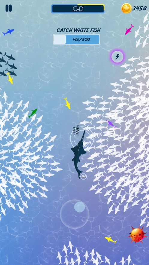饥饿的鱼喂养和成长游戏采用了大鱼吃小鱼的玩法,在这里你要控制着自己的鲨鱼去吞噬周围所有比你小的鱼,这样才可以不断进化为大鱼。当遇到比自己大的鱼一定要快速躲避,考验你反应能力的时刻到了。