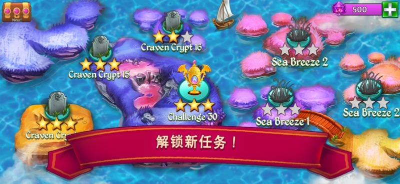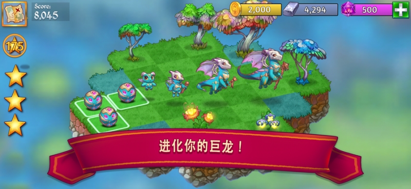 萌龙进化论 Merge Dragons中有六百多个任务等待玩家来挑战,这些挑战需要玩家调动思维,解开谜题后,玩家还能获得大量的奖励。在解谜和冒险路上,玩家还有可能遇到邪恶的怪物,击败怪物还能获得更多资源。
