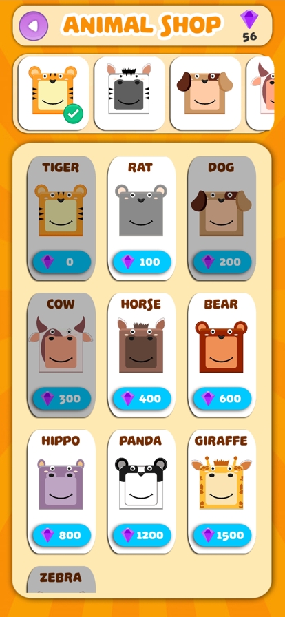 这款游戏中有很多的小动物可以选择,玩家可以利用自己获取的钻石来兑换更多的小动物。这里的背景也是经过精心设计的,小伙伴可以通过这些绿色背景来保护自己的视力。