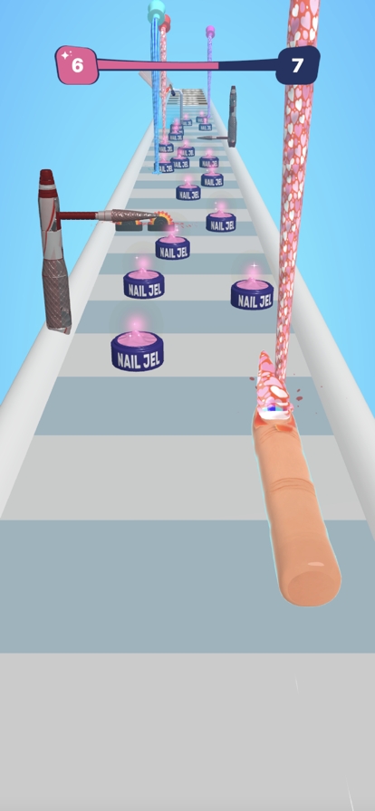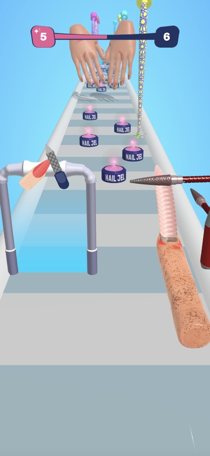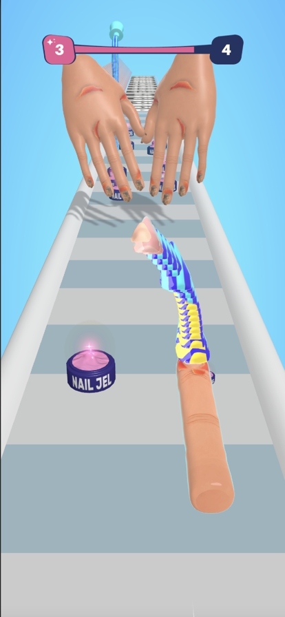 Fake Nails!是一款需要玩家收集指甲并进行装饰的游戏,玩家在这里可以随心所欲的收集各种指甲并进行装饰,玩家收集的指甲越长,可以获得的积分也就越多,带领你的指甲到达终点,即可获得胜利。
