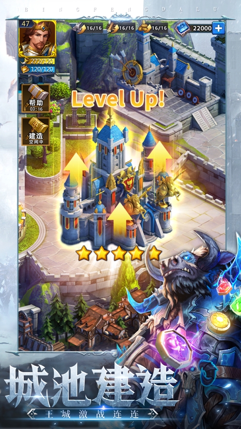 4.传奇英雄开局助力,不同英雄招募,还可以建造城堡家园提升战力。