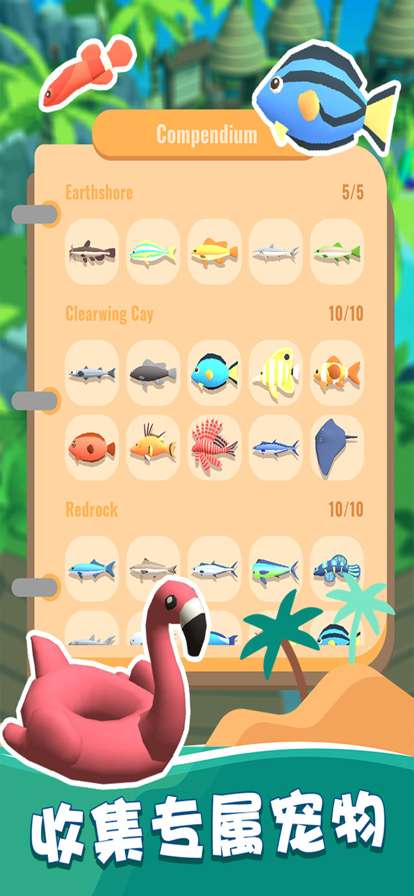 完成工作以捕捉稀有而难以捉摸的鱼。收集并升级宠物同伴以增加闲置收入。