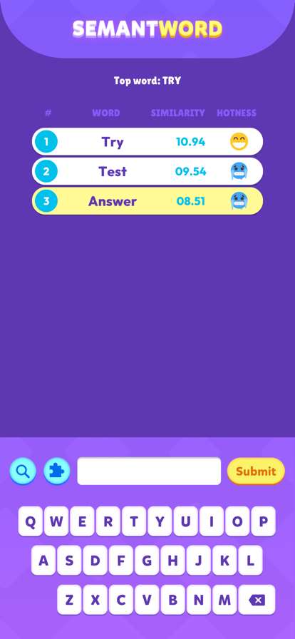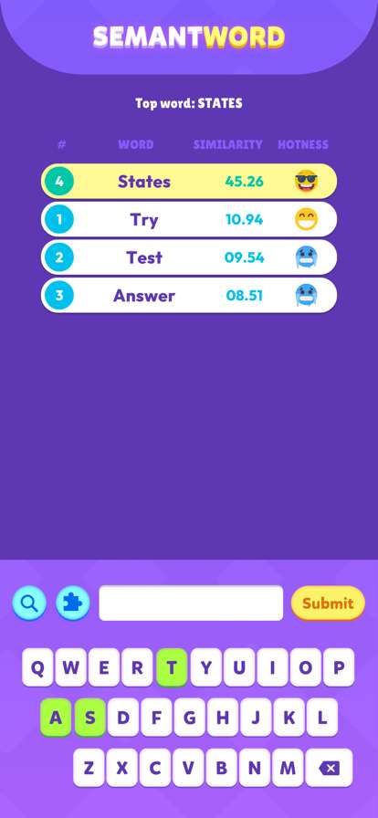 如果你喜欢玩各种和单词相关的游戏的话,一定不要错过Semantword 这款游戏,在这里有很多的字母和单词,小伙伴加入关卡后需要查找指示,然后根据指示将单词整合,得出最后的答案,你就可以获得游戏的胜利。