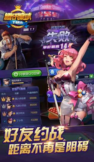 社交互动:腾讯桌球支持好友系统,玩家可以邀请好友一起对战,增加游戏的社交性。
