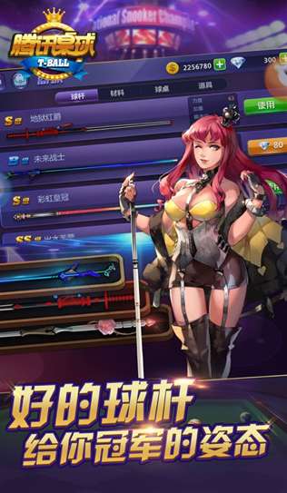 尖端巧粉,杆杆随心,游戏中配置多种属性、不同品质外形的球杆和球桌,超炫球技,彰显至尊身份。
