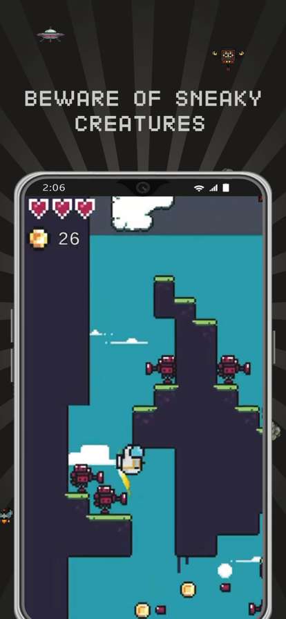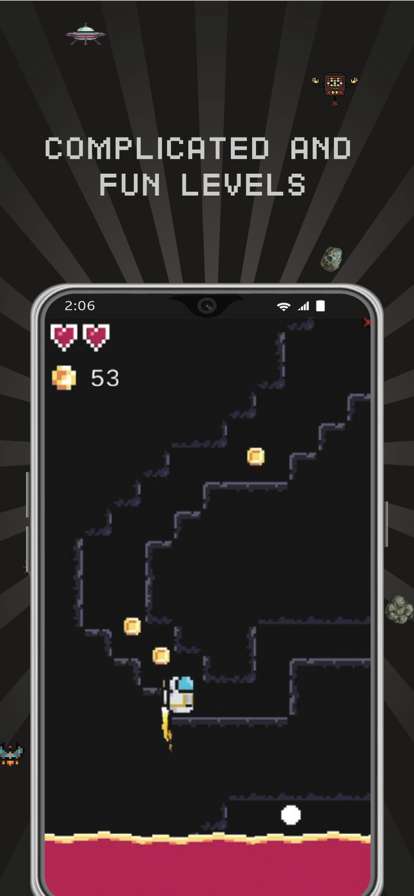 游戏中的关卡多种多样,小伙伴在闯关时可以尽情享受到攀爬和收集的乐趣。还有很多的障碍物,它们可以击落你的宇航员,这样你就会丧失一条命,所以注意闪避,让自己顺利到达终点吧。