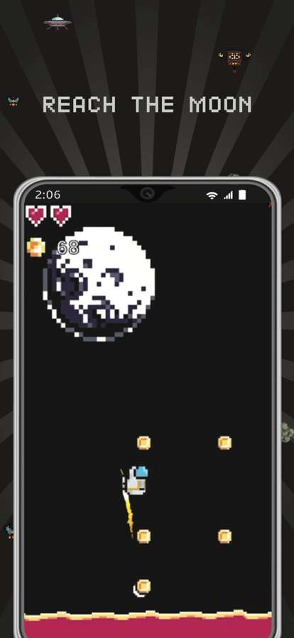 让你的宇航员飞向月球,同时在充满障碍、迷宫和卑鄙生物的道路上收集奖励,