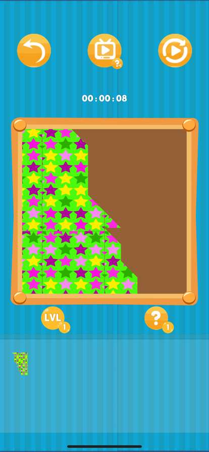 游戏有一个独特的目标,即在不重叠的情况下将关卡中的所有形状拖到棋盘上。