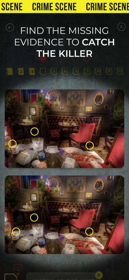 面对一个连环杀人案,Crime Scene Cop: Differences这里的用户人心惶惶,小伙伴在这里需要动用自己的火眼金睛找到各种线索,当你顺利将这些线索整合起来,你就能找到杀人犯了,然后把他们捉拿归案吧。