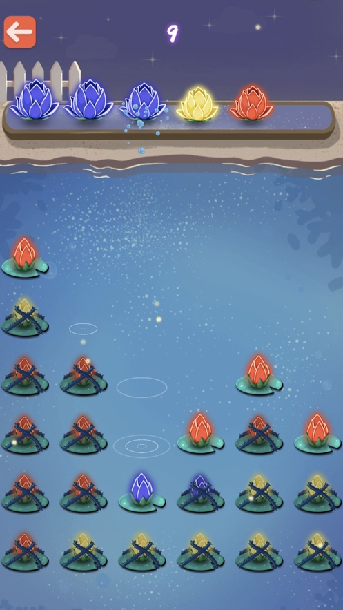 2.顶部会有睡莲提醒你接下来的颜色,让你思考来合理放置和消除。