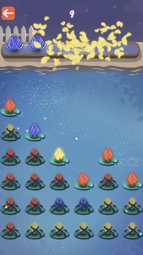 3.游戏中有的睡莲是被锁住的,你需要连续消除才能解锁并消除。