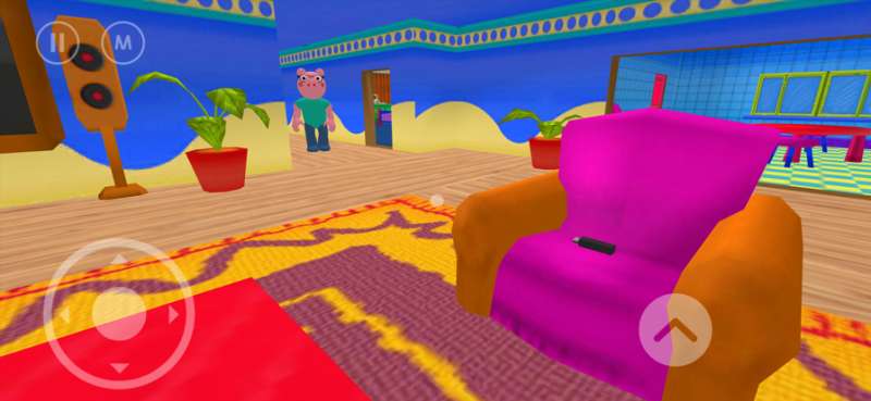 游戏中的房间是立体的,当玩家撞上了小猪的家人,可以通过和房间的交互来逃避追捕。在关卡中还有很多的小道具,不要犹豫,把它们拿起来吧,这样你就拥有了对抗的战力,可以顺利帮助小猪逃出生天。