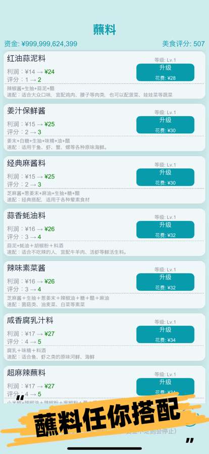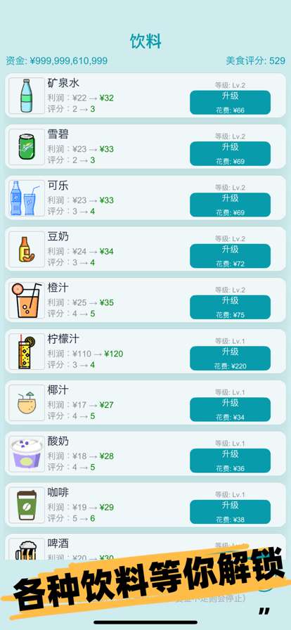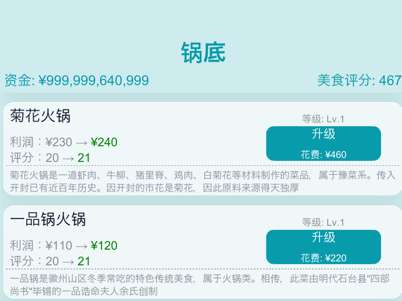 真实的经营体验:游戏中模拟了真实的经营过程,玩家需要面对各种市场变化和竞争压力,通过不断的努力和创新来提高自己的经营水平。同时,游戏中还有各种风险和挑战,如食材价格波动、顾客投诉等,让玩家体验到真实的经营风险。