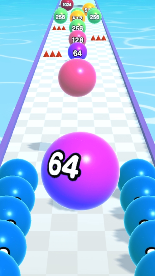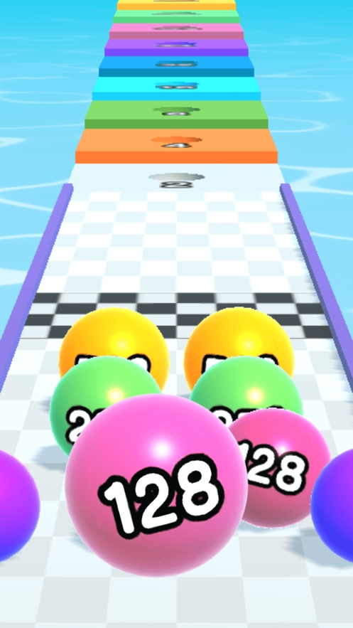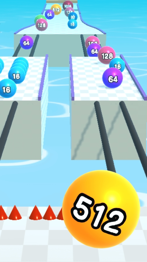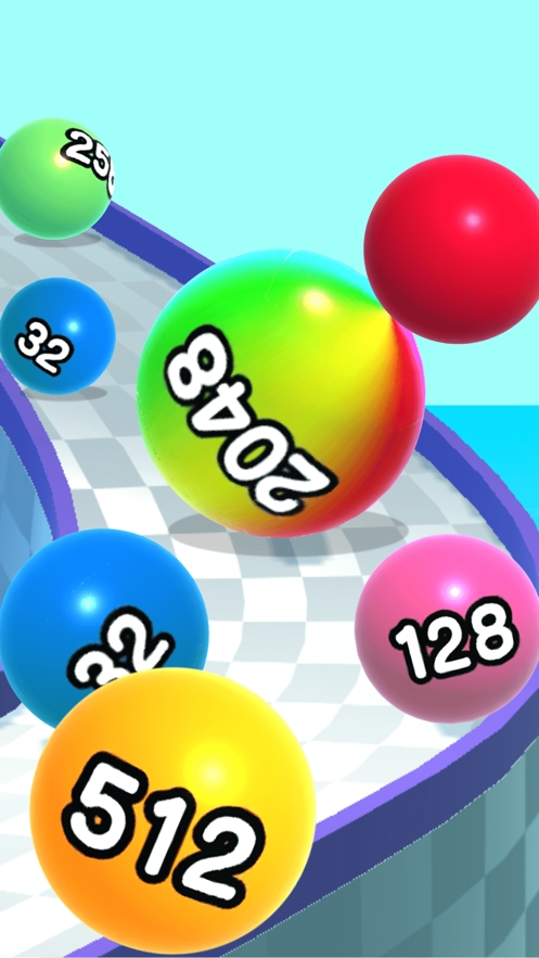 如果在途中你遇到与你相同数字的球并成功合并它的话,将会进一步变成更大的数字球。