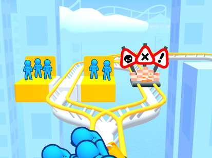 在游戏中有很多的障碍物,玩家在闯关时要注意闪避,如果你的过山车撞上去了,那么游戏就会结束。在这里还有更多的小伙伴在路上等着你,你可以点击邀请他们和你一起乘坐过山车,一起经历各种冒险哦。