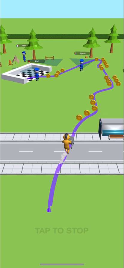 玩家在收集硬币的同时,还会遇到一些巡逻的警察,想要继续闯关的话,你就要避开这些警察的视线。在作战的时候,你还可以在屏幕上画线,这样你就能更快速的完成通关任务了。