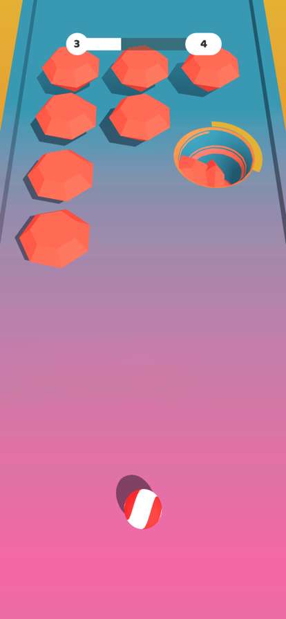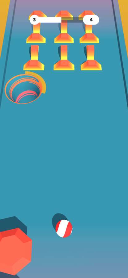 孔洞堆堆球中有一条赛道,在赛道上有很多的障碍物,玩家需要点击小球在赛道上滑动,顺利到达游戏的重点即可获得游戏的胜利。还有很多的障碍物等待玩家来挑战,你要小心闪避,不要掉下去。