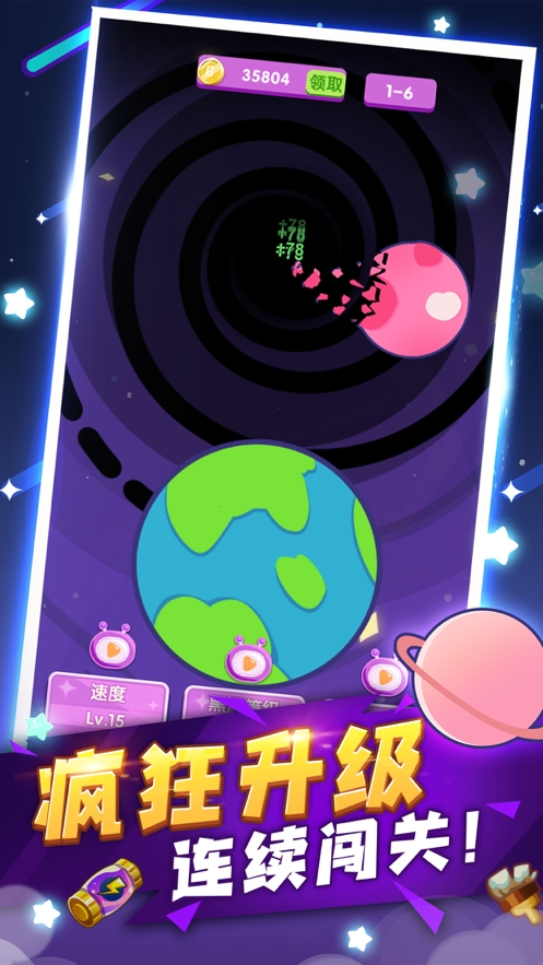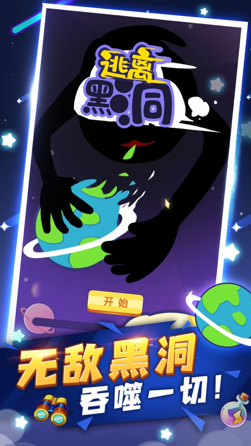 2、不知道从什么时候开始,宇宙中生成了这个黑洞,为了不让自己消失,你需要控制它吞噬周围各种星球!
