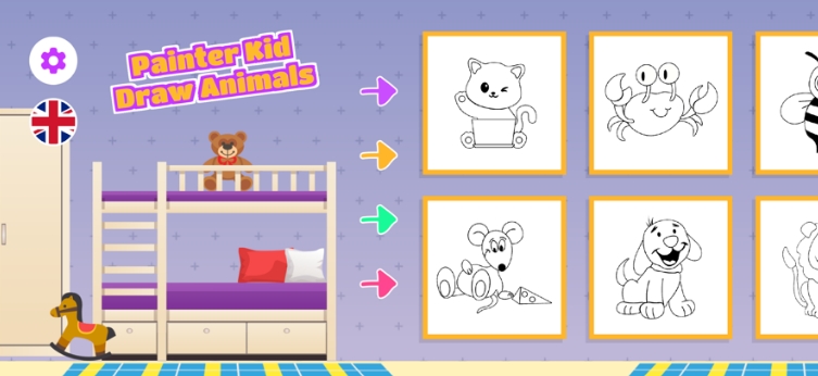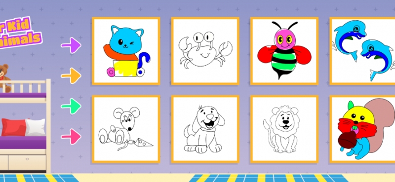 Painter Kid: Color Animals中有很多可爱的小动物线稿,玩家可以加入这款游戏进行各种各样的填色创作。这里给出的工具都是非常实用的,玩家想要任何工具都可以在这里找到。