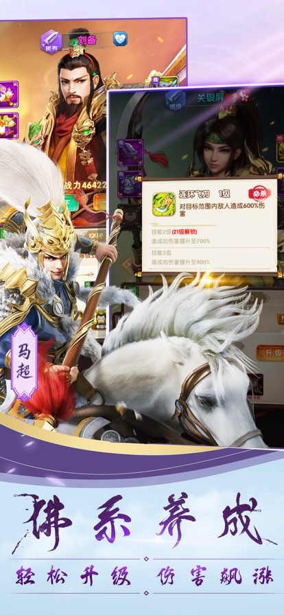 ◆随意养成意向武将,重生资源全额返还,武将养成搭配诸多特色阵容,畅玩塔防副本,竞技、爬塔一个都不能少!