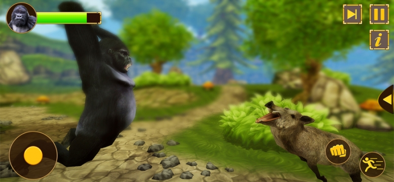在生气的大猩猩大脚怪物中,你将会遇到各种各样的野生动物。玩家在这里要做的就是从这些野生动物的手中拯救大猩猩家族。老鹰抓住了大猩猩的儿子,赶紧进入森林中战斗,将它解救出来吧。