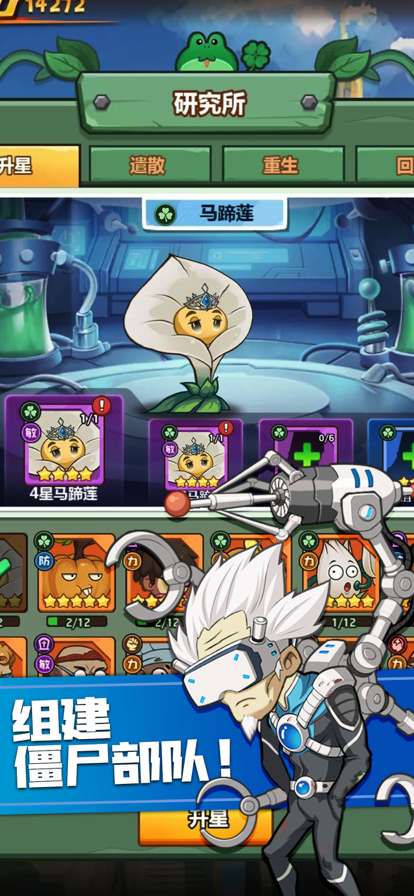 2、【组建僵尸部队!】 海量异种僵尸随心挑选,配合系别卡牌特殊加成,闯关挑战所向无敌!