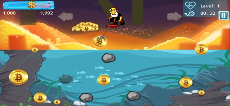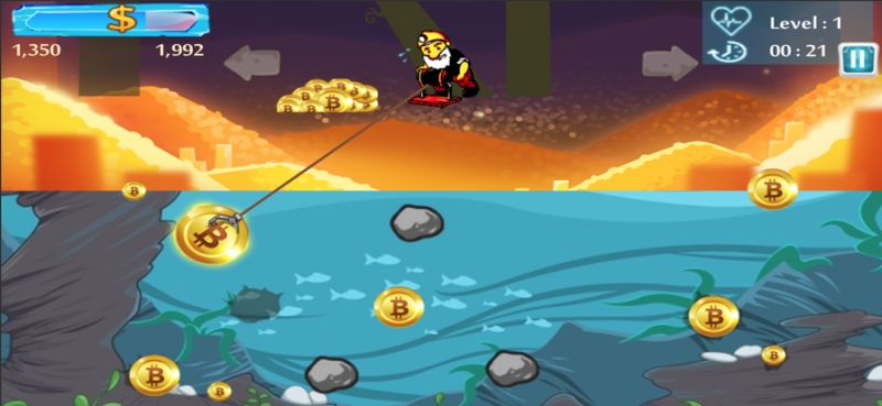 当钩子摆动时瞄准硬币,点击屏幕释放钩子并收集挖掘加密游戏中的硬币,以实现您的目标并赚取足够的硬币通过关卡。