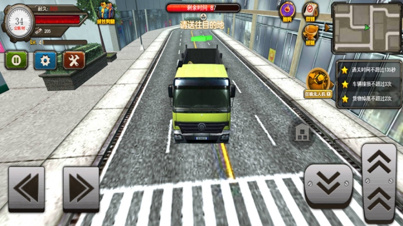2、有各种不同品质的卡车,可以自由驾驶。每次你完成任务,你会得到一个特殊的金币道具,以确保更多的卡车可以解锁;