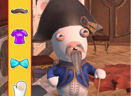 在Lapins Crétins @ Versailles中有一片美丽的花园,但是有一天花园里来了一只兔子,它会装扮成各式各样的人物来破坏玩家的物品,玩家在这里需要及时修理自己的花园,并找出兔子,赶走它。