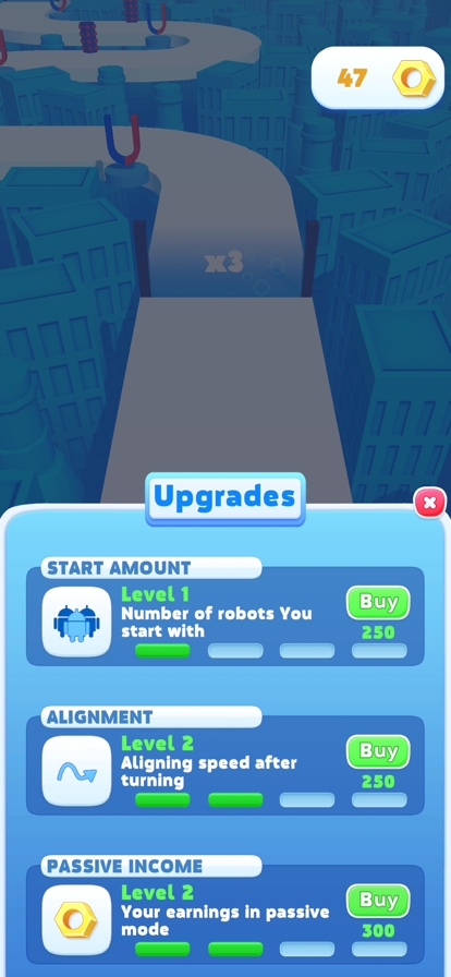 在Droid Race这款游戏中有很多的障碍物,玩家想要完成通关,就要操控自己的机器人快速通过这些障碍物。这里还有很多的螺丝道具,玩家获取的道具越多,获得的积分排名也就越高。