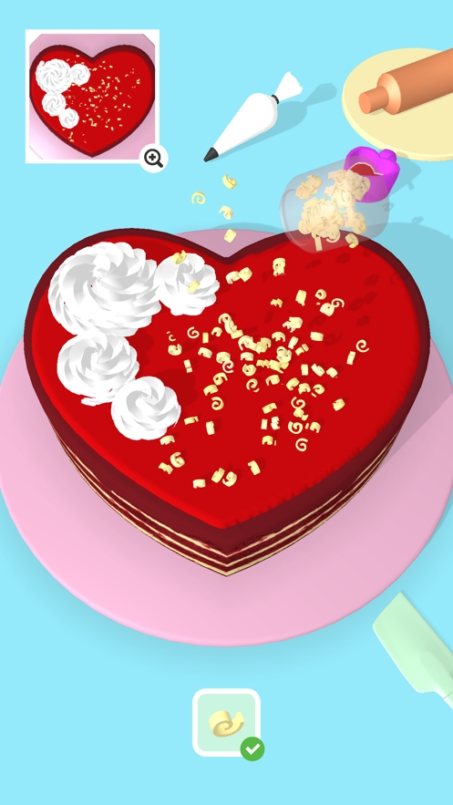 游戏采用了高度自由的玩法,在这里你可以随心所欲的装饰你的蛋糕。你不仅可以体验到制作蛋糕的乐趣,装饰完成后还会获得满满的成就感,能够激发你的想象力。