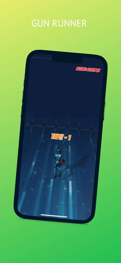 Gun Runner 是一款身临其境且专注的游戏应用程序,可让您通过简单的点击手势进行游戏。