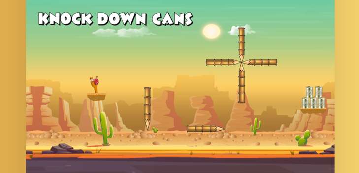锡罐被放置在不同的浮动位置。用弹弓王击倒锡罐是一款击倒驻扎在3个不同独特环境中的锡罐的游戏。