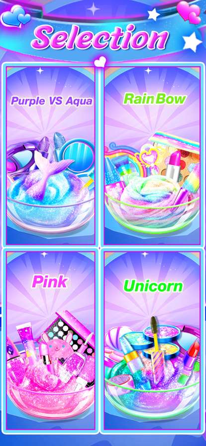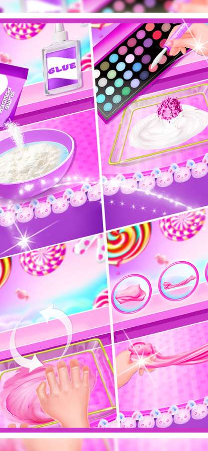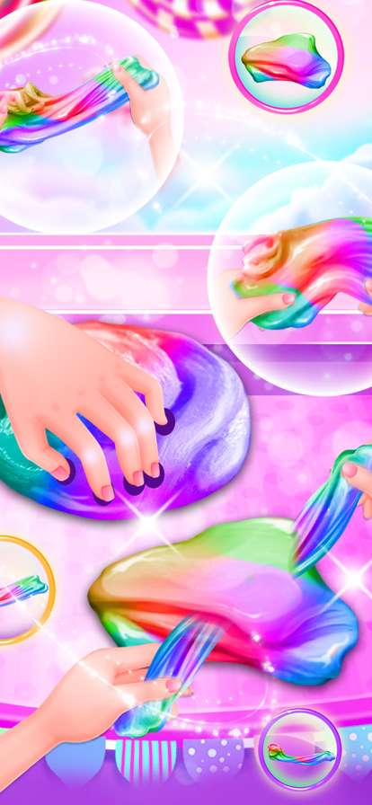 一些很酷的级别:紫色vc水蓝色闪光SlimeUnicorn时尚SlimePink Salon SlimerInbow颜色通过混合所有成分来制作完美的黏液,从而打造新贵游戏。