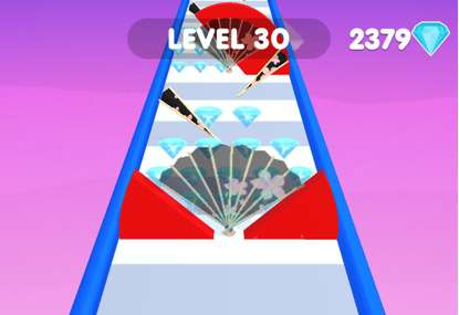Folding Run是一款非常有趣的手工闯关游戏,在这里有很多的扇子需要玩家制作,玩家需要将扇面收集起来,然后点击赛道中的各种装饰物,让自己的扇子更加漂亮,兑换更多的奖励。