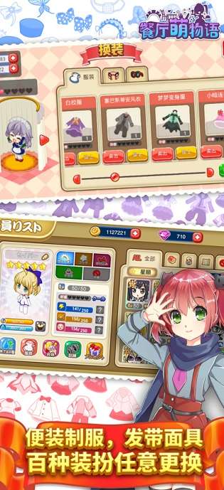 自由度极高的装饰布置:游戏中提供了丰富的装饰道具和家具,玩家可以根据喜好和主题自由布置自己的餐厅,创造出独一无二的萌娘空间。