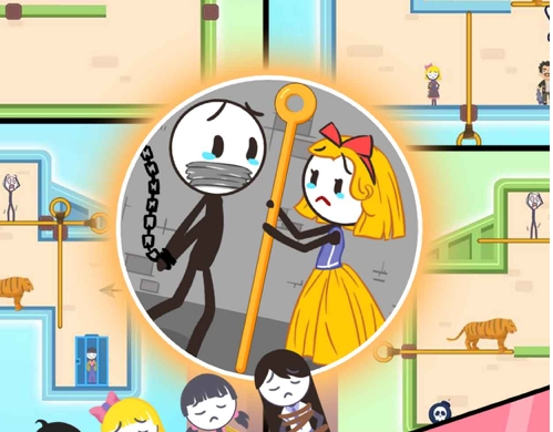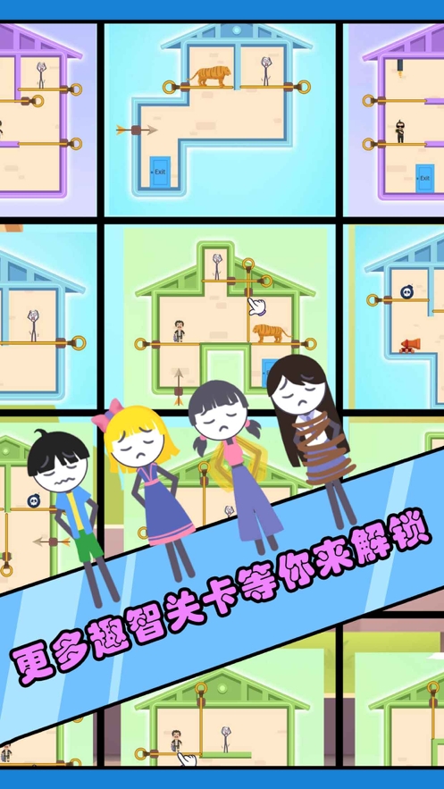 火柴人被困住了,快来救救火柴人!游戏采用了拉针的玩法,十分考验玩家的逻辑思维以及脑力。在这里你要拉出最正确的针使火柴人顺利逃脱出来,搞笑的音效能够给你带来无限的欢乐。