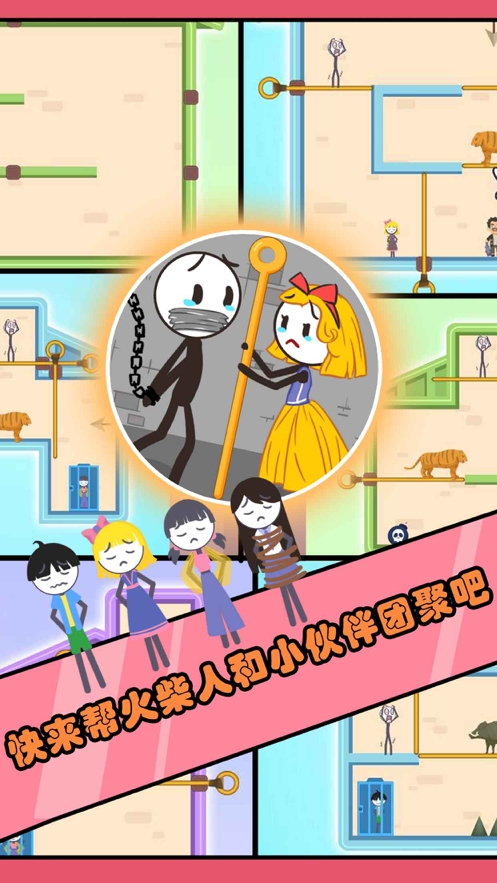 游戏采用了火柴人的形象,通过点击屏幕即可完成任务,适合各个年龄段的玩家。并且这里为你精心设计了超多关卡,每一关对你来说都是一场不小的挑战,你能将火柴人顺利解救出来吗?