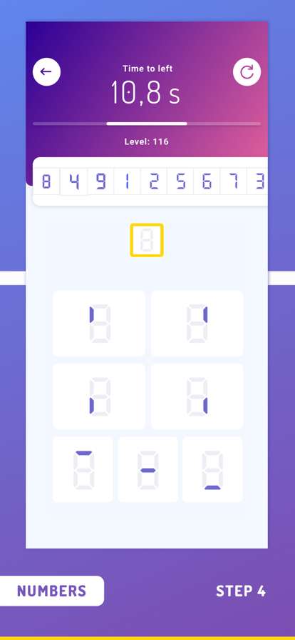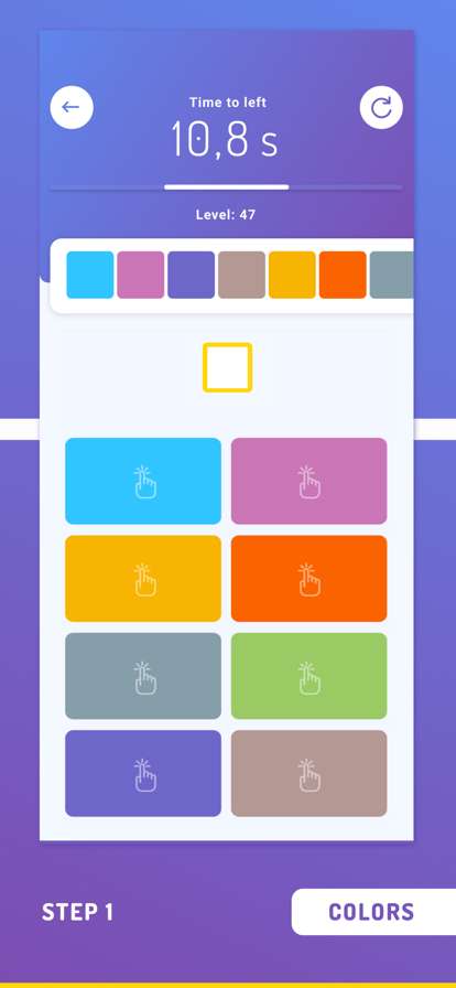 •根据顶部栏选择颜色或数字。•每个级别后,您将获得关于您的点击速度的信息。
