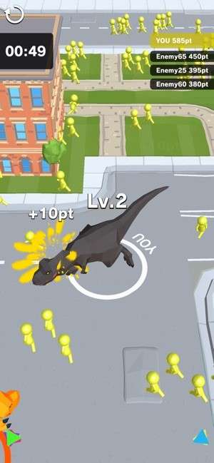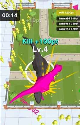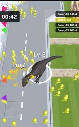 1、快速移动恐龙,不断进行吞噬,躲避其他玩家的攻击。