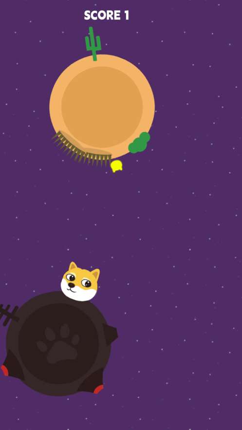 点击屏幕控制狗头跳跃:玩家需要通过点击屏幕来控制狗头跳跃,每次跳跃的高度和距离都会影响到狗头到达下一个星球的时间和距离。