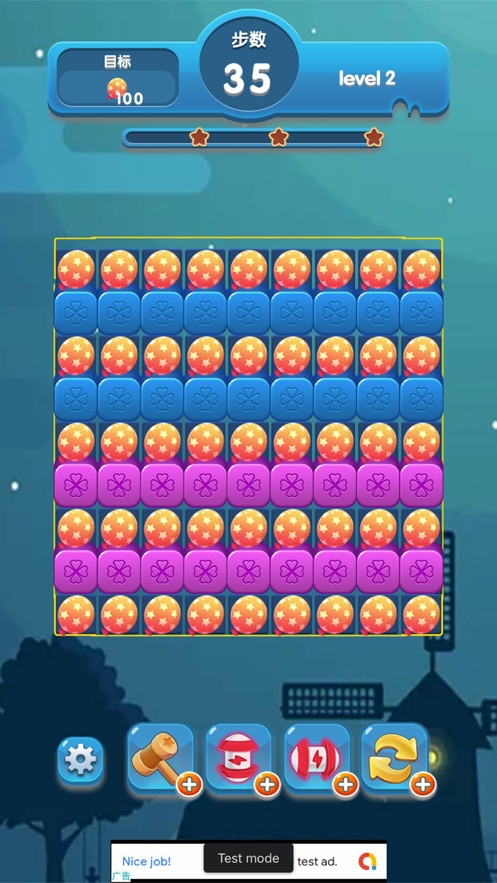 2、闯关的过程中,只要相连的星星数量大于2,无论竖排横排都能消除;