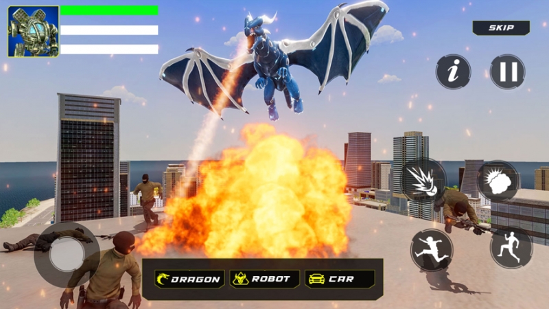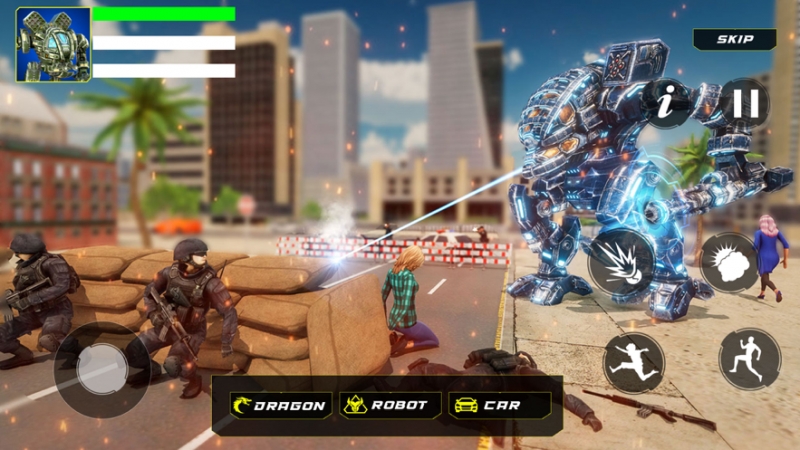 这座城市正处于危急存亡的时刻,作为正义的机器人战士你要勇敢的站出来守护城市的安宁以及和平。在Dragon机器人转型游戏中你要灵活的使用自己的各个技能以及武器,将坏人全部抓住并严惩吧!