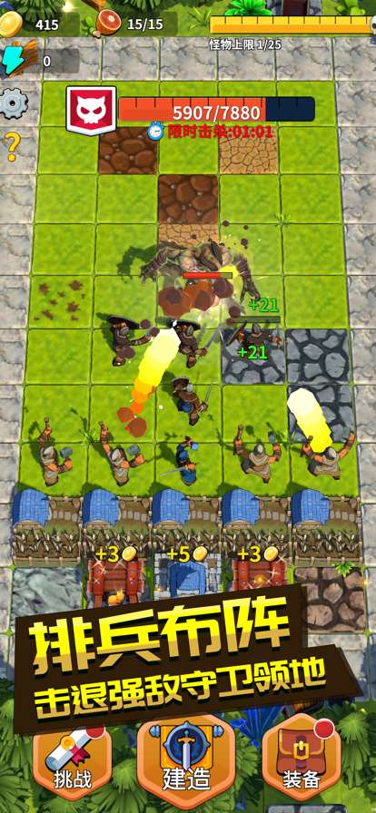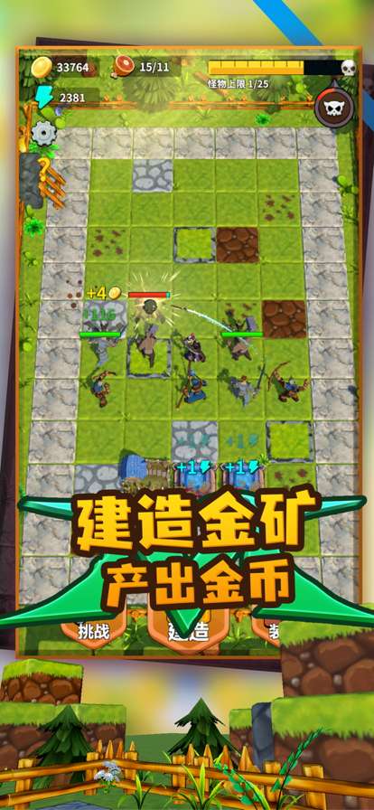 建议新手可以开局先造两个金矿,然后依次建造壮汉-牧师-剑士壮汉放最前面,