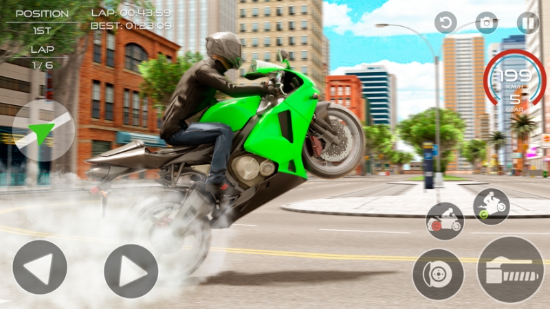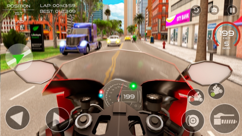 Extreme Motorbike City Race游戏为玩家呈现了美国繁华的城市,在这里你可以驾驶着自己的摩托车在城市中尽情穿梭。这里为你准备了淘汰赛以及冠军赛两种模式,你可以按照自己的喜好进行挑战。