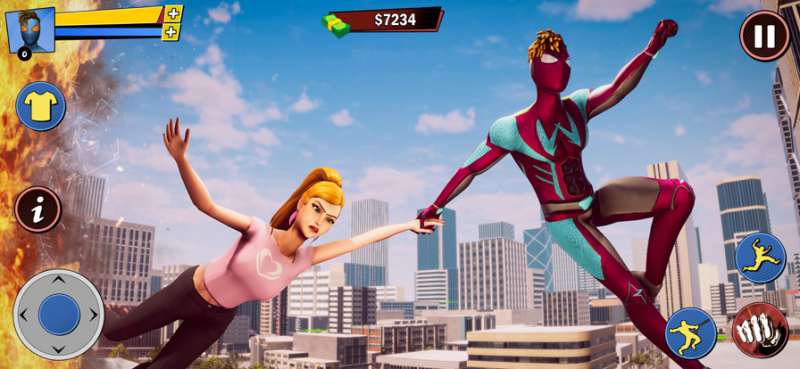 绳索极好的英雄飞行游戏是一款以超级英雄为题材的动作冒险游戏,玩家需要扮演一名蜘蛛侠英雄,从城市帮派中拯救平民生命并结束犯罪。在游戏中,玩家将飞越大城市的安全地带,执行许多惊险刺激的救援任务。由于警察部门无法控制犯罪活动,所以玩家将成为城市的守护者,使用自己的技能和能力来杀死罪犯,并从一场大战中拯救整个城市。