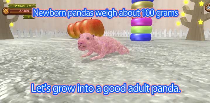 一款能让你从新生熊猫成长为成年熊猫的应用程序。刚出生的熊猫又小又弱,重约100克。