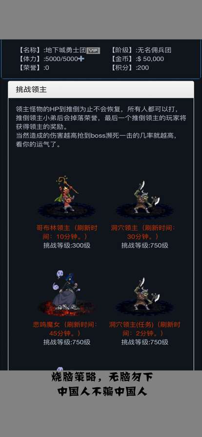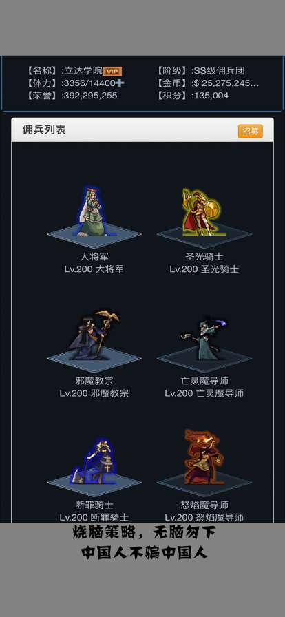 佣兵王传说:文字是一款比较考验玩家思维的策略战争游戏,在游戏中有海量的战士,玩家加入游戏后,需要合理利用这些战士的战斗技能,当你顺利击败对面的地热后,胜利就是你的了。