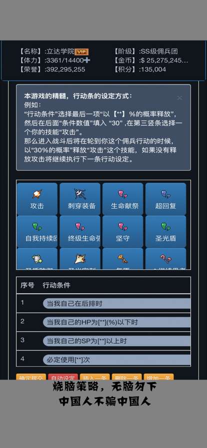 最重要的是不同于市面常见的那些换皮游戏,这里每个佣兵都拥有独特的行动条设置,