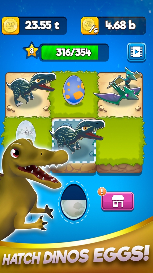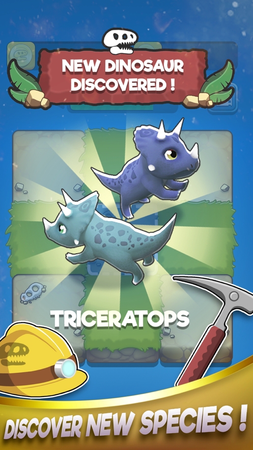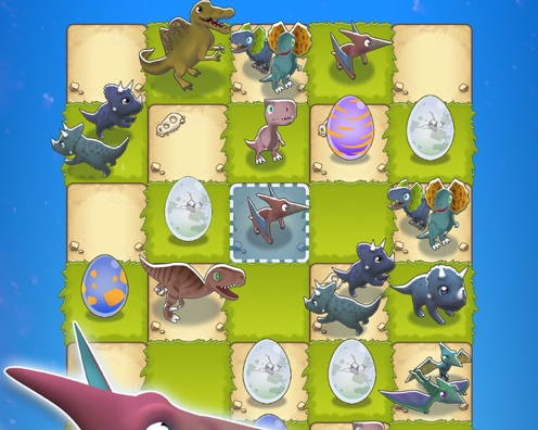 合併DINOS侏羅紀世界游戏为玩家营造了一个丰富的侏罗纪时代,这里为你呈现了三角龙、异龙、蜿龙等诸多品种的恐龙。你要将相同品种的恐龙进行合成,从而使它变得更加强大。